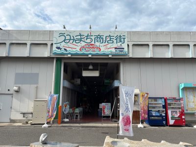 地域再生マネージャー事業「ふるさと再生事業」で、香川県高松市を訪問しました。写真は、高松中央卸売市場の一角にある「うみまち商店街」です。新鮮な海産物や軽食を気軽に楽しめるローカルスポットです。(8月27日~28日 地域再生部)