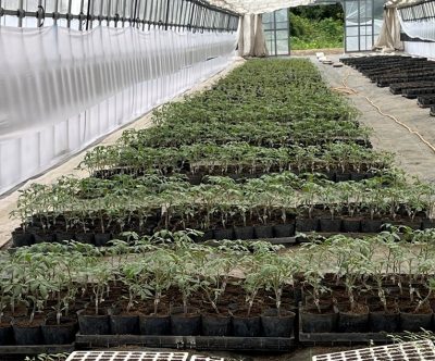 ものづくり支援事業の視察のため、兵庫県加西市にある「岡田農産(株)」を訪問しました。写真は、トマトピューレに使用するトマトの栽培の様子です。(地域産業課)
