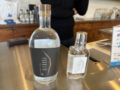 ものづくり支援事業の視察のため、北海道平取町を訪問しました。写真は、野生のカラハナソウや古来から伝わるアイヌ文化の有用植物を使用したオリジナルクラフトジン「POROSIR(ポロシリ)」の写真です。現在は、平取町の『びらとり温泉美味い宿ゆから』で購入することができます。(地域産業課)