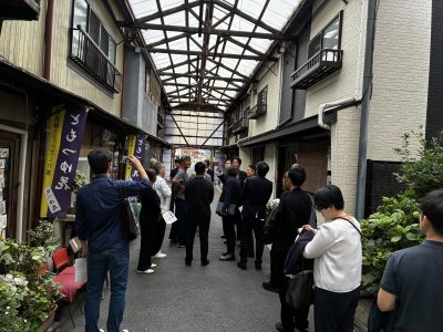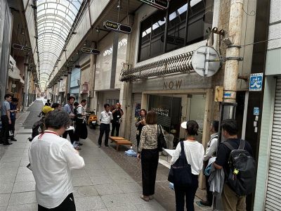 地域再生マネージャー事業「まちなか再生事業」で、奈良県生駒市を訪問しました。写真は、大正15年(1926年)に建設された旧公設市場内で活用可能物件等の説明を受けている様子です。(10/20 共創振興部)