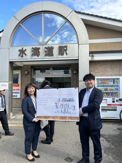 地域再生マネージャー事業「まちなか再生事業」で、茨城県常総市を訪問しました。視察では水海道のまちの歴史を説明するパネルをご用意いただきました(10/27共創推進課)